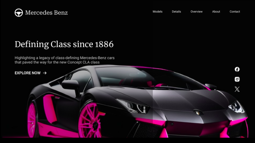 Developed a high-end UI design concept for Mercedes Benz, focused on luxury and innovation. The interface features sleek, modern visuals and interactive elements that align with the brand's premium image, providing an elevated browsing experience for users exploring the concept car details.